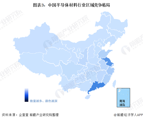 从区域竞争格局看,江苏和广东的半导体材料企业分布较多,其次是浙江、山东和福建等省份,也聚集着较多的半导体企业。