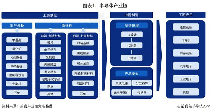 半导体材料行业产业链全景梳理:半导体材料处于半导体产业链的上游