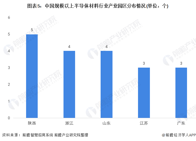 半导体材料行业园区分布:陕西最多,浙江、山东紧随其后