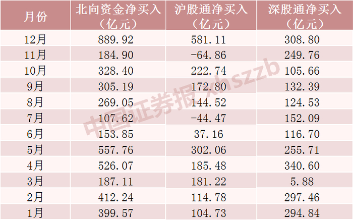 北向资金2021年各月净流入情况