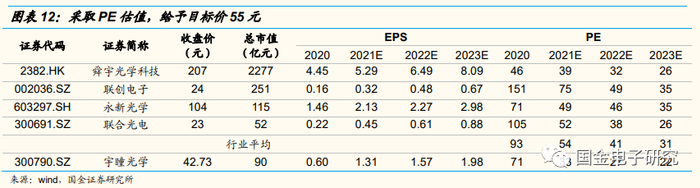 ◾ 传统变焦镜头业务:小倍率变焦镜头市场成长较快,公司市占率较高,预计将充分受益;公司对于大倍率变焦镜头进行了技术储备,预计未来将逐步导入客户,届时将为公司贡献可观营收。预计2021~2023年公司出货量同增30%、20%、25%。考虑伴随产品规格升级,公司变焦产品单价逐年提升5%。考虑公司2021年稼动率提升、毛利率提升至35%,2022、2023年维持在同一水平。