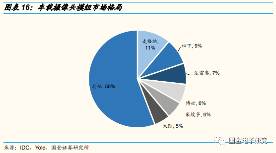 ◾ 目前车载摄像头模组主要由Tier 1、Tier 2组装,主要企业为加拿大麦格纳、日本松下、法国法雷奥、德国博世、采埃孚天合、大陆镜头等企业,行业格局分散。我们认为伴随造车新势力崛起,传统整车厂和Tier 1的关系或将逐步模糊,同时,伴随摄像头像素提升,模组组装难度升级,预计未来车载镜头厂有望获取部分模组份额。