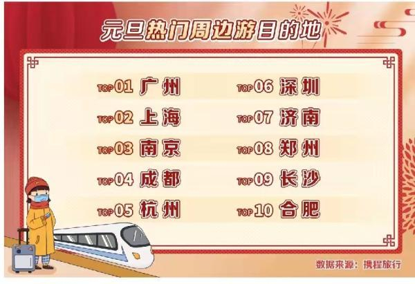 数据显示,珠海、广州、上海、北京、威海、青岛、苏州、常州、无锡、镇江成为元旦小长假周边游热门目的地Top10。周边游出行订单中,门票订单量较2020年元旦增长238%;省内游订单中,酒店订单量较2020年增长超70%。