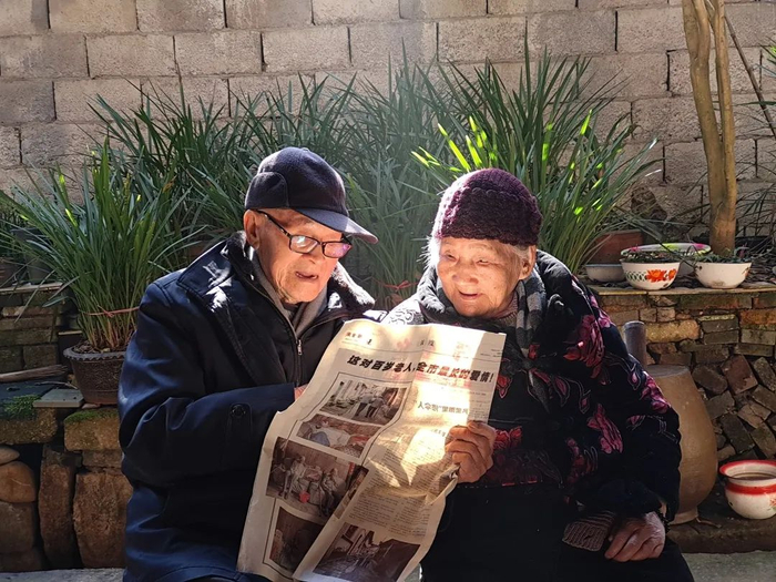 百岁夫妻新碧街道黄碧村徐献章、田兰菊夫妻双百岁,婚龄86年,是目前全市婚龄最长的一对夫妻,夫妻俩风风雨雨,互敬互爱,相爱如宾,谱写了一首甜蜜的爱情之歌。