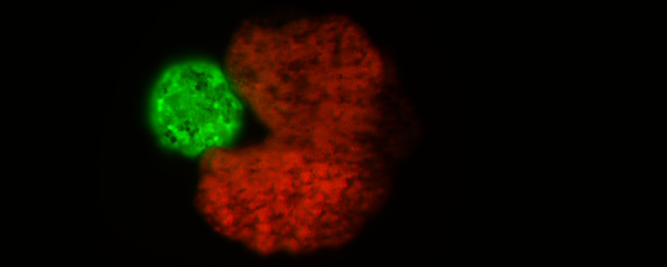 我认为这恰当地描述了正在发生的情况。我们或许会说它们在繁殖,但自然界的繁殖意味着从一颗种子、一枚卵子或母体的一个碎片开始生长。我们发现,如果我们把离散的干细胞撒进xenobot的培养皿,xenobot就会把这些干细胞堆叠成一个个细胞团。包含至少50个细胞的细胞团会发育成xenobot的孩子。