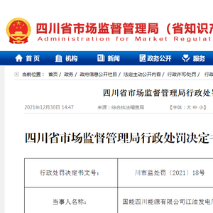 四川省市场监督管理局发布行政处罚决定书(国能四川能源有限公司江油发电厂)