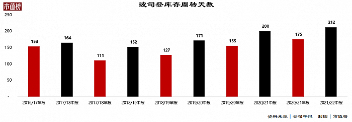 拉长时间轴来看,从2018年开始,波司登的库存周转天数整体呈现上升趋势,也就是说库存周转整体变慢。