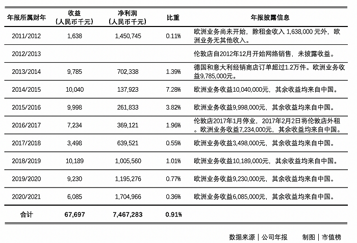 另外,根据波司登年报梳理,其欧洲业务收益(包含租金收入)占整体业务净利润不到1%,如果上述推测不准确,实际72国为欧洲业务收益部分,那么,从年报披露的数据来看,对畅销的定义可能值得商榷。