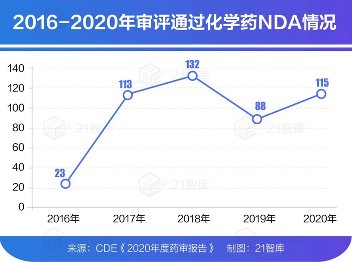 2020年CDE审评通过批准IND(新药临床试验)申请1435件,较2019年增长54.97%;审评通过NDA (新药上市申请)208件,较2019年增长26.83%;审评通过ANDA(仿制药上市申请) 918件;审评通过批准一致性评价申请577件,较2019年增长121.92%。