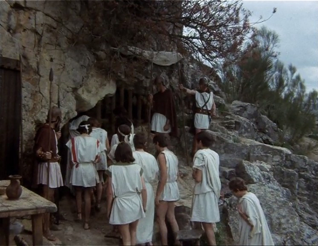 他们就是如此——被互相束缚,并且只能够看见投射到墙上的头像,而火在他们身后燃烧。苏格拉底称,这些人——消极且迷醉——“跟我们一样”。这一隐喻类似于现代的电影院或电视荧幕,观察者在其中消极地接受自己眼前看到的图像,却永远不被允许去看产生这些图像的原因。这些图像反过来又受“傀儡操纵师”控制,后者只允许洞穴里的居民看到自己允许他们看到的东西。傀儡操纵师首先是城邦的立法者,是城邦的创建者、政治家和立法者,是带来关于正义的法律和法典的人。与他们并列的则是诗人、神话作者、历史学家和艺术家;而在他们之下的则是匠人、建筑师、城市规划者和设计师。所有这些匠人都贡献了自己的一份力量,来装饰构成政治生活的各式各样的洞穴。