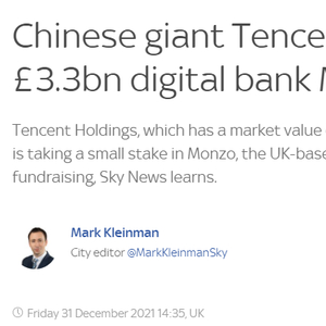 但Monzo比较受投资者欢迎。去年12月初,Monzo获得了阿布扎比增长基金(Abu Dhabi Growth Fund)和Coatue等投资者的注资,其估值来到45亿美元左右。天空新闻形容,腾讯控股的参与,将为Monzo的股票登记册增添另一位明星投资者(prominent investor)。