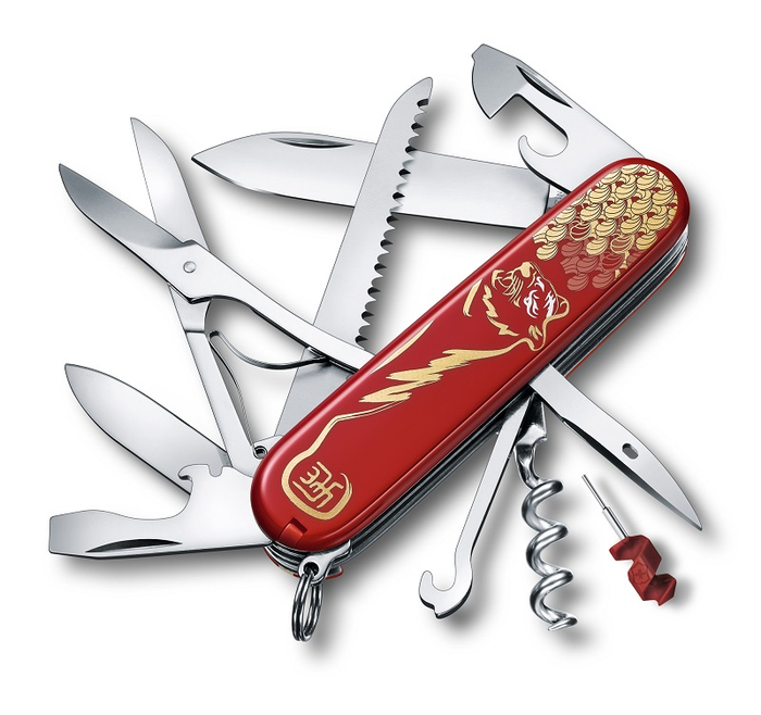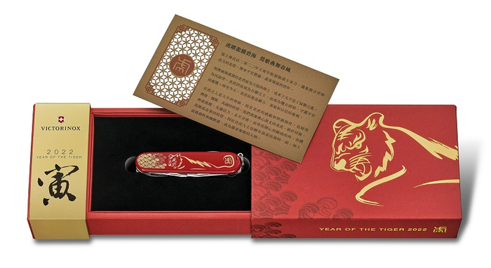 2022 都市猎人虎年生肖限量版瑞士军刀是对充满活力的虎年生肖的致敬。限量版瑞士军刀以经典红色衬托栩栩如生的金色猛虎,咆哮虎口配合金色海浪,把虎的雄壮威猛展现得淋漓尽致。全球限量发售 8,000 件,这个数量设定亦选取自中国幸运数字“8”以传递美好吉祥的祝福,中国大陆仅售 1,100件。