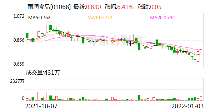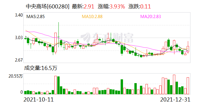 截至2021年12月31日收盘,中央商场收盘价2.91元,当天上涨3.93%;截至1月3日,雨润食品近两个交易日股价上涨16%。