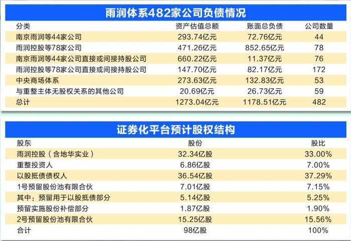 证券时报·e公司记者获取的重整方案显示,通过股权结构调整,雨润体系全部482家公司将整体纳入经营方案。