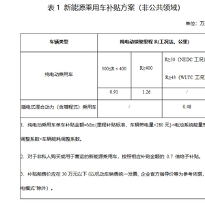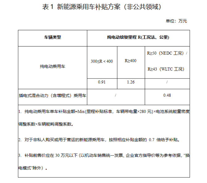 新能源乘用车(非公共领域)补贴方案(图片截自财政部官网)