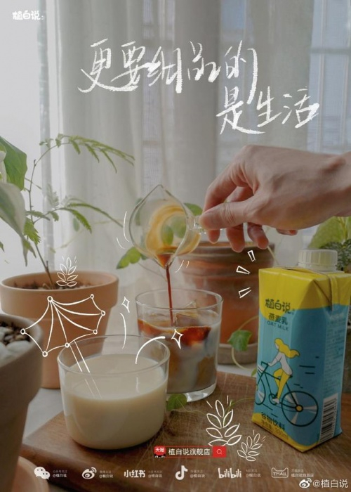 除了产品的迭代创新,全新“植白说”品牌在营销上也与年轻一代的审美和喜好同步。 “为了更好地与国内消费者沟通,我们在产品标签上同时启用了‘Adez’和‘植白说’,以期营造更具亲和力与氛围感的品牌气质。”在植白说天猫旗舰店中,Adez燕麦谷物饮在包装显眼处新增了“植白说”字样,与另一面英文版包装的AdeZ相呼应。