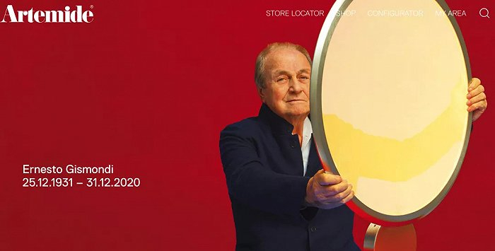 2020年12月31日,意大利著名灯具与照明设计品牌 Artemide创始人兼总裁 Ernesto Gismondi 去世,享年89岁。