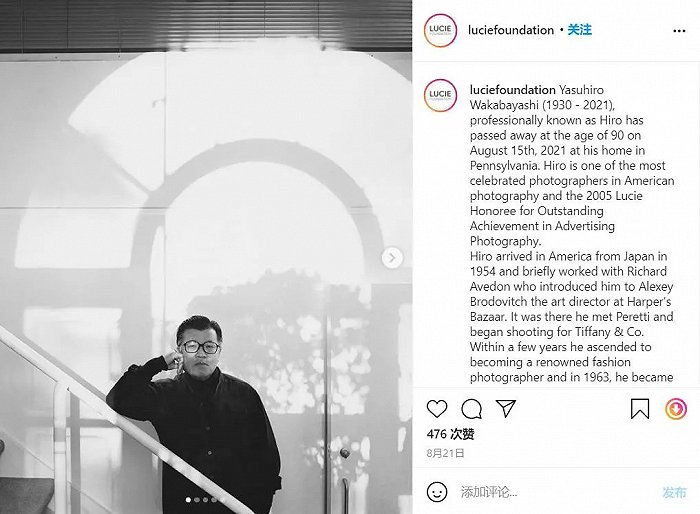 2021年8月20日,日裔美国摄影师 Yasuhiro Wakabayashi 去世,享年90岁。Yasuhiro Wakabayashi也被称为 Hiro。