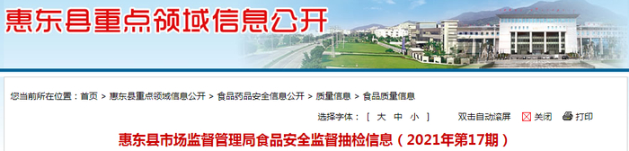 广东省惠东县市场监管局抽检食品319批次 不合格23批次