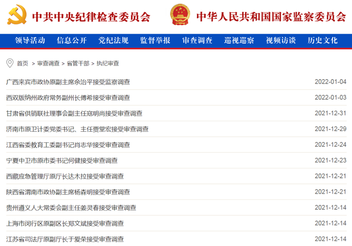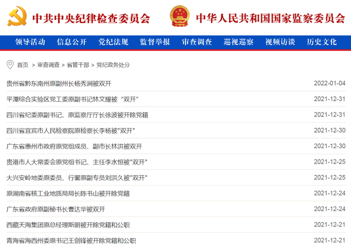 2021年12月反腐月报:1“虎”被查,3“虎”被处分