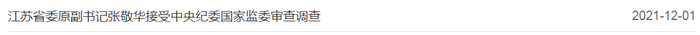 江苏省委原副书记张敬华接受中央纪委国家监委纪律审查和监察调查;