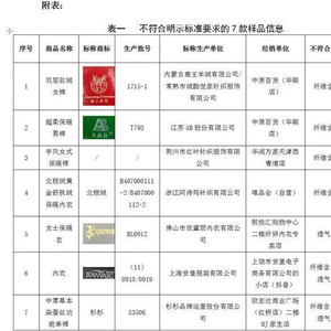 在明示的执行标准上,21款样品执行的是对“保温率”“透气率”等功能性指标有考核的《针织保暖内衣》标准或企业标准。检测结果显示:7款样品的质量指标不符合明示标准要求。