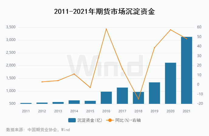 国内商品期货市场沉淀资金已经达到3092亿元,同比增加46.37%,增速位于近10年第三位,同时客户权限也首次突破万亿大关。随着大中型企业用户进入期货市场进行价格风险管理,以及新品种的上市,期货市场规模预计将继续保持快速增长。