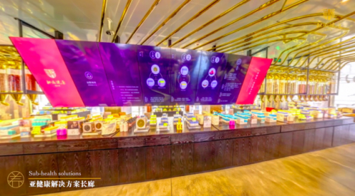 二楼是传统的中医馆和诊疗区,相比起一楼的复古时尚风,二楼虽然是同仁堂最拿手的看病问诊区,但传统古老的设备已经成了装饰,这里充斥着更多现代化的设备,比如电动按摩椅,更加精准的电子秤,无人售药机(这是亚洲首台24小时自助售药机),还有亚健康解决方案长廊,通过健康数据监测追踪给出全套健康方案。全面化智能体验,自主化购物,还能网上下单,这层楼更能让消费者感觉同仁堂在新零售端的改变。