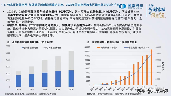 2020年,22条特高压线路年输送电量5318亿千瓦时,其中可再生能源电量2441亿千瓦时,同比提高3.8%,