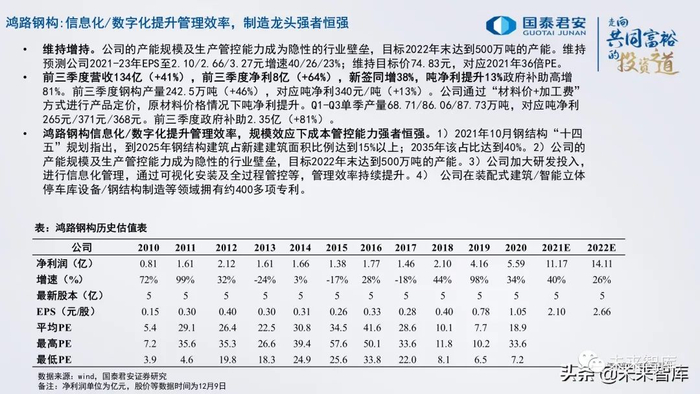 我们认为持续性高强度的研发投入是行业保持持久竞争力的必要条件和护城河。2021年前三季度,中央企业研发经费投入同比增长30.6%,连续八个月保持30%以上的增速,研发经费投入强度同比提高0.1个百分点。