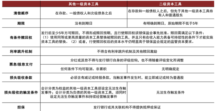 ► 期限:其他一级资本工具没有到期日,二级资本工具原始期限不低于5年。