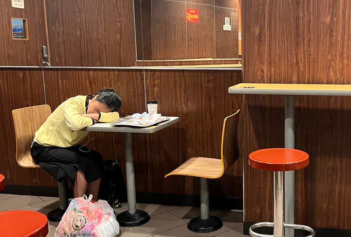 在麦当劳待的第一个夜晚,林静特意在手机上,查了不少麦当劳过夜的信息。而后工作日的晚上,她大都待在这里。