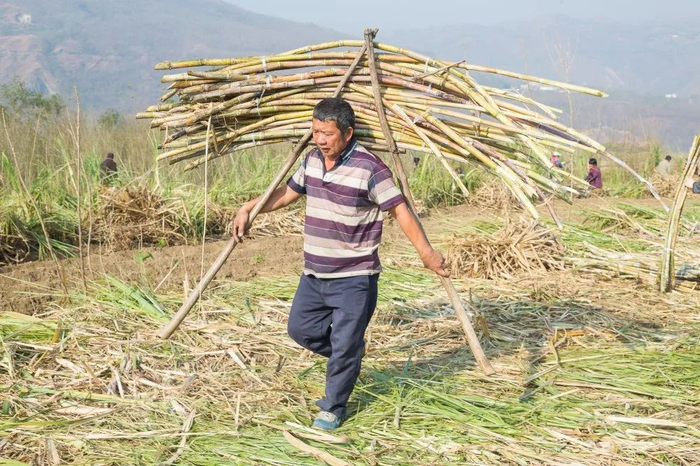 他要仔细挑选最肥嫩多汁的甘蔗,这是制糖关键的第一步。