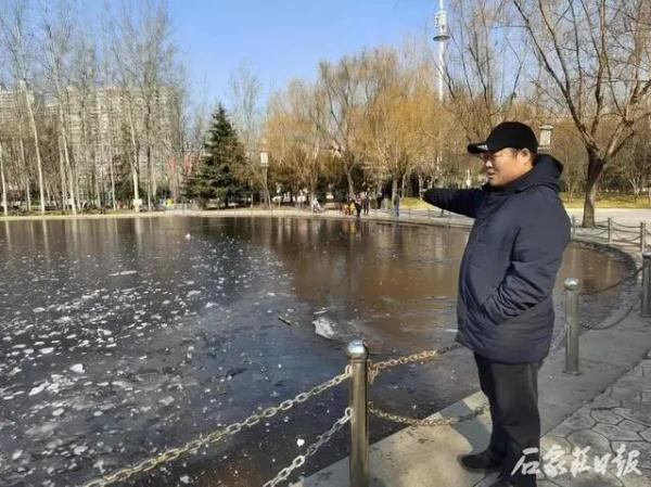 快,孩子掉进冰窟窿了!53岁公园保安跳进冰湖救男童