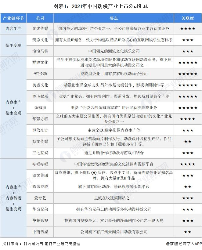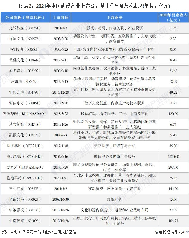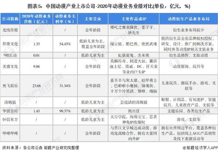 原标题:【最全】2022年动漫产业上市公司全方位对比(附业务布局汇总、业绩对比、业务规划等) 来源:前瞻产业研究院