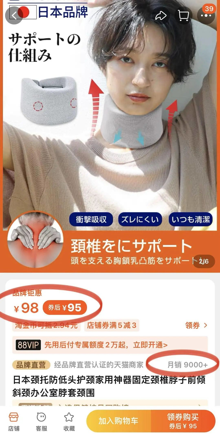 在网购平台输入关键词后,很快便有成千上万商品跳了出来。这其中,有国产品牌,也有号称来自日本、韩国等地的进口品牌。价格在100元左右至500元不等。以一款售价98元、月销量9000+的日本品牌“防低头神器”为例,在宣传中,该商品称其可“提供颈部支撑,减轻颈椎压力,同时维持颈椎的稳定性,避免损伤。”
