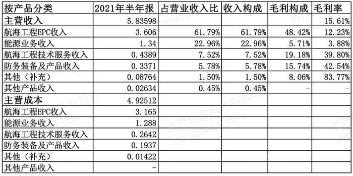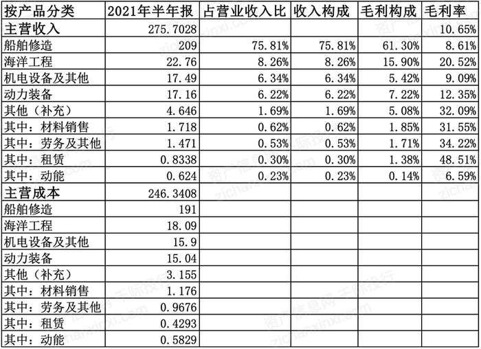 表 中国船舶(证券代码:600150.SH)收入成本分析(单位:亿元)