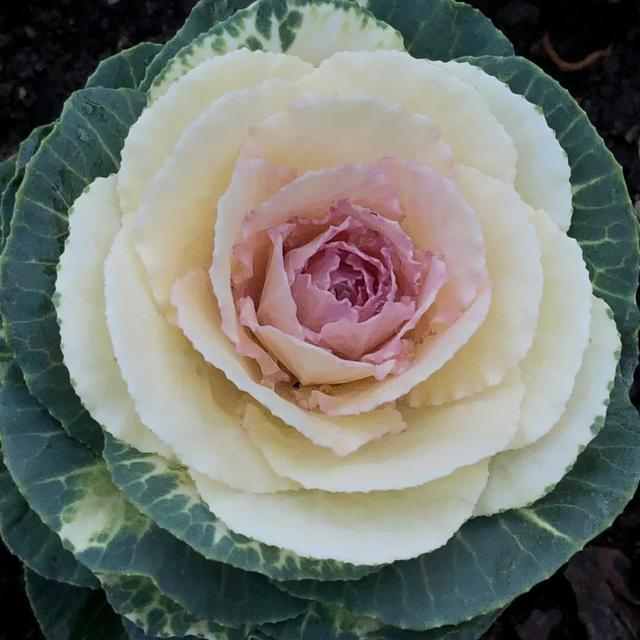 羽衣甘蓝,又名叶牡丹,十字花科芸苔属草本植物。羽衣甘蓝其实就是我们常说的甘蓝,也就是卷心菜的一个变种。只不过它的叶子呈皱缩,没有团团包裹成球状,有长长的叶柄,叶子的颜色非常丰富,座状叶丛,层层叠叠,且具有较长的观赏期,经冬季低温,于翌年抽薹开花、结实。观叶观花都有较好的景观效果。
