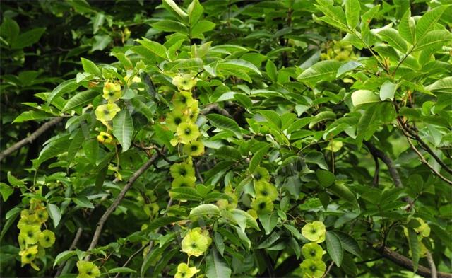 青钱柳,胡桃科青钱柳属植物,奇数羽状复叶,花期4-5月,果期7-9月;雌雄同株,葇荑花序,果翅革质,圆盘状。枝、叶、果均具腺体。果序美丽,观赏价值高。树皮富含单宁,可提制栲胶,亦可做纤维原料。该树种亦是一种珍贵的药用植物,具有降血糖功能。