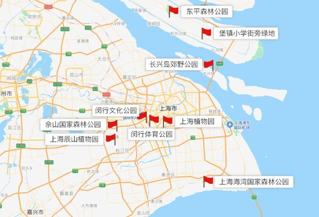 崇明区:东平森林公园、长兴岛郊野公园、堡镇小学街旁绿地