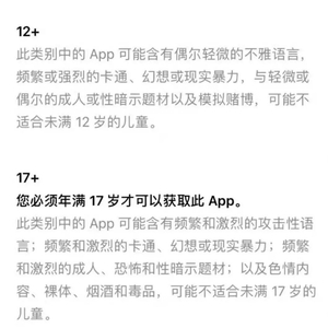 部分网络游戏的适龄提示较为混乱,不同应用商店关于适龄提示的标准和做法不同⇘