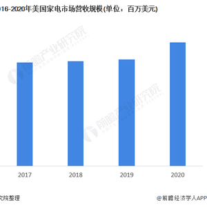 美国的家用电器行业包括两个主要类别:大型家用电器和小型家用电器。家用大电器,如冰箱、冰柜、炉灶、洗衣机和洗碗机。小家电包括食品加工机、烤面包机和咖啡机等。2016-2020年,美国家电市场营收规模呈总体上升趋势,根据Statista出具的《Home appliances in the U.S.》报告中披露的数据,2020年,美国家电营收规模达到527亿美元,同比上升16%。