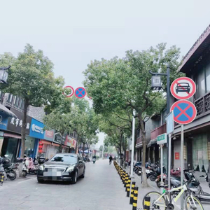 街道两侧能设置停车位吗?记者现场看到,这条街原本就属于禁停区域。为了防止机动车占道停车,一些区域已经安装了隔离桩。商户大门距离街道的间距也不宽敞,加上现在多家商户在门前放置了各种装饰品或可供游人休憩的桌椅,想要在门前划出停车位,看上去可行性不大。