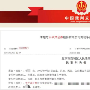 近日,裁判文书网披露的一则判决书显示,“90后”女孩李某将太平洋证券状告至法庭。