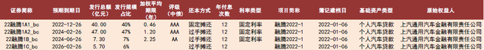 本周银行间拟发行1 单车贷ABS(100 亿元):21 融腾1 是上海通用汽车金融有限责任公司发行的车贷ABS,拟于2022年1 月6 日簿记建档,资产池新车占比100%,抵押车辆品牌包括别克、五菱、凯迪拉克等多个品牌,其中别克(28.86%)和五菱(21.69%)的未偿本金余额占比最大。地区分布方面,广东、山东、河南为前三大集中区,未偿本金余额合计占比23.97%。