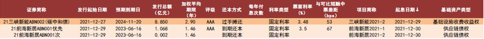 上周银行间共发行两单公募ABN 项目,总发行规模9.92 亿元:其中一单为基础设施收费收益权类的公募ABN,发行规模8.85 亿元,发行利率3.48%,利差为53bps;另一单为供应链债权ABN,发行规模1.07 亿元,发行利率3.5%,利差67bps。