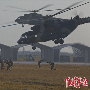“起飞!”随着飞行指挥员一声令下,数架某新型武装直升机迅即战斗起飞,快速掠地飞行至跑道尽头,在突破“敌”雷达侦测区后跃升高度,组成双(三)机战斗编组,向预定空域飞去。勤务、运输等各型多架直升机陆续升空,进行飞行战斗训练。