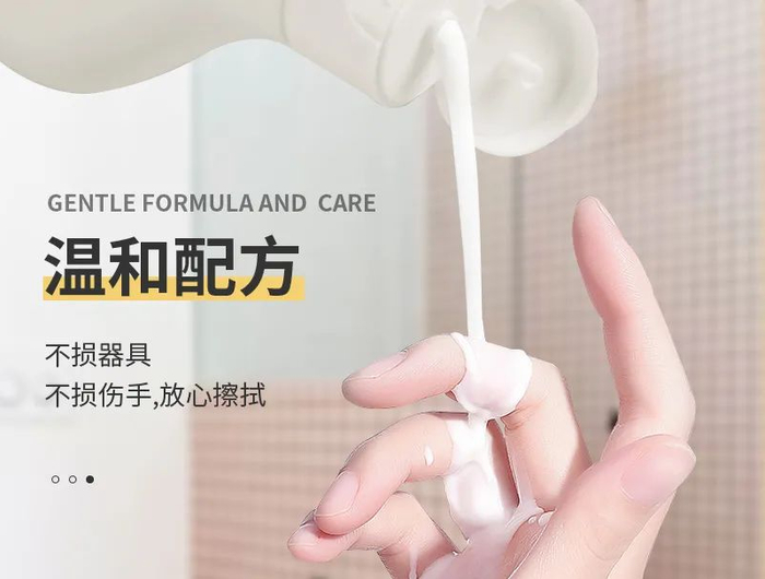 她说清洁效果很棒,比起容易喷溅、滴漏的水清洁剂,它挤出来是白色的乳液状,更容易控制用量。