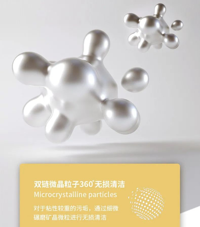 它不像传统的清洁品采用的“酸、碱性强的腐蚀类成分(如草酸、烧碱)来达到这么强的清洁力,这是因为它采用了一个核心技术——双链微晶子技术。