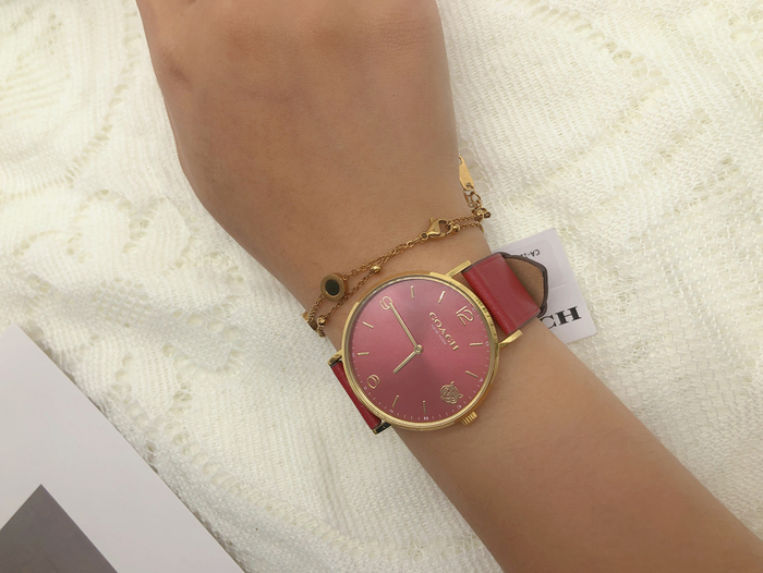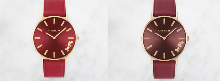 手表都延续了COACH腕表一贯的时尚风格之外,还在设计中融入了传统的中国红元素,质感满满。